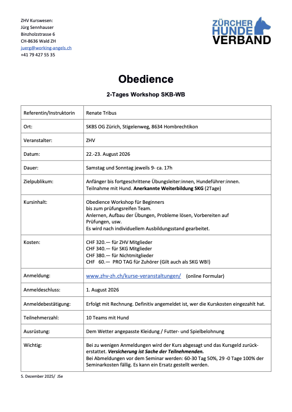 CHF 60.- pro Tag für Zuhörer (gilt auch als SKG WBI)